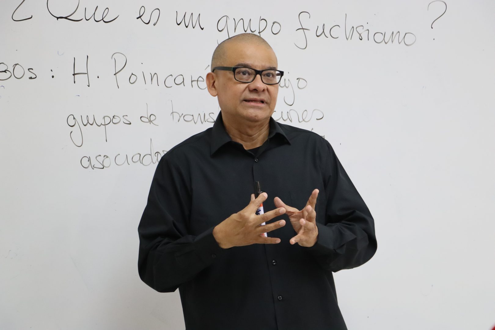 La actividad incluyó la conferencia ¿Qué es un grupo fuchsiano?, impartida por el Dr. Manuel Cruz López, quien presentó una descripción general de los grupos fuchsianos introducidos por H. Poincaré en la década de 1880, y abordó algunos aspectos de sus acciones en el plano hiperbólico.