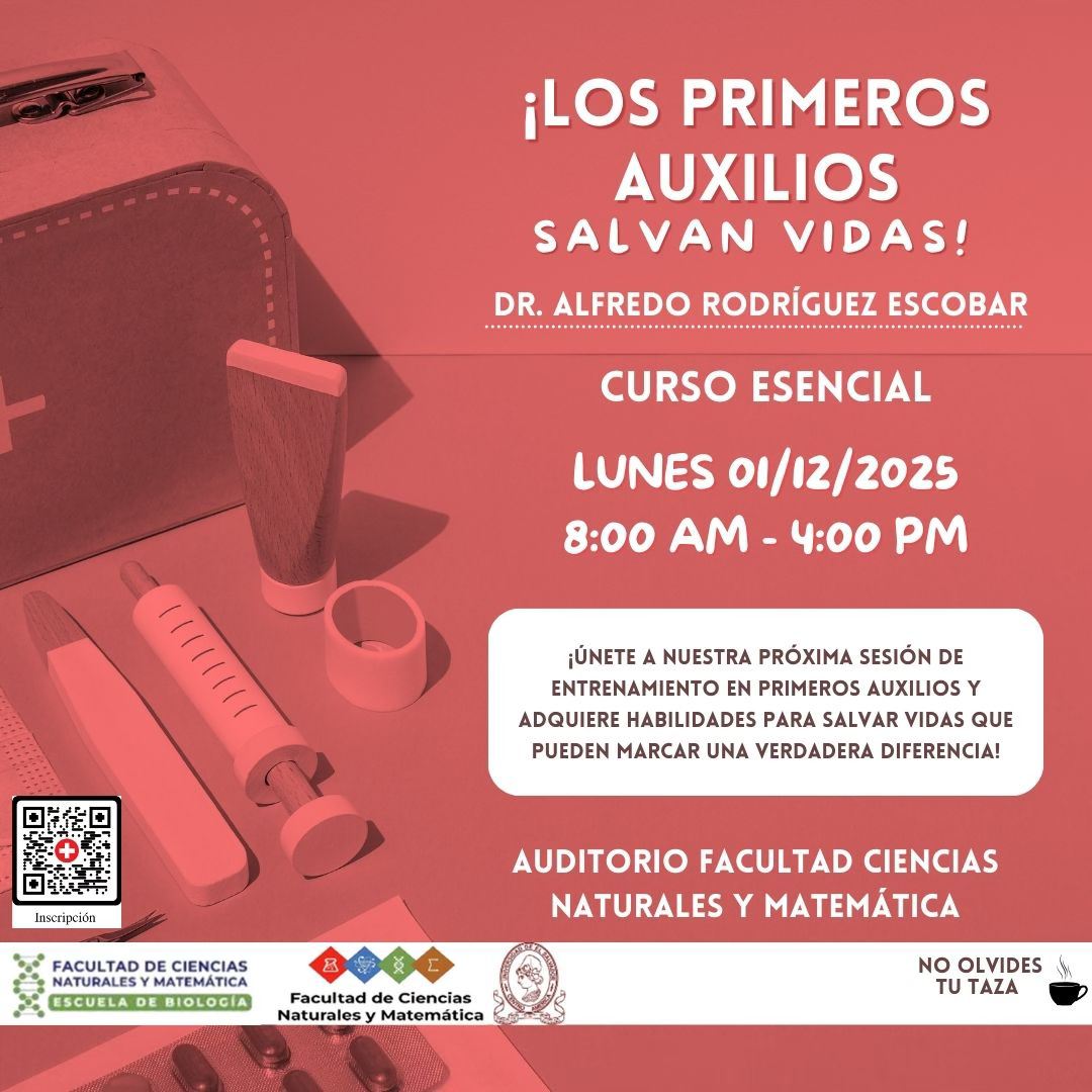 La Escuela de Biología UES invita a participar en el Curso de Primeros Auxilios, una iniciativa de la dirección de la escuela, en coordinación con los estudiantes de Licenciatura en Biología y Biología Marina.